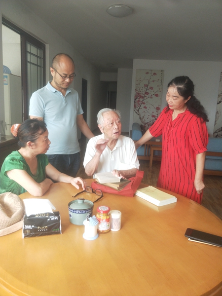 叶华生(副校长)、张淑梅(离退休党支部书记)、梁素燕(离退休党支部宣传委员)慰问原学校副校长、离休党员旭泉