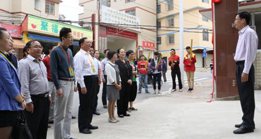 何小萍处长(右三)和隋德平校长共同为长堽校区揭牌
